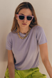 Ženska pletena majica kratkih rukava, sa okruglim izrezom i sitnim rebrastim prepletajem na rubovima od finog viskoznog materijala