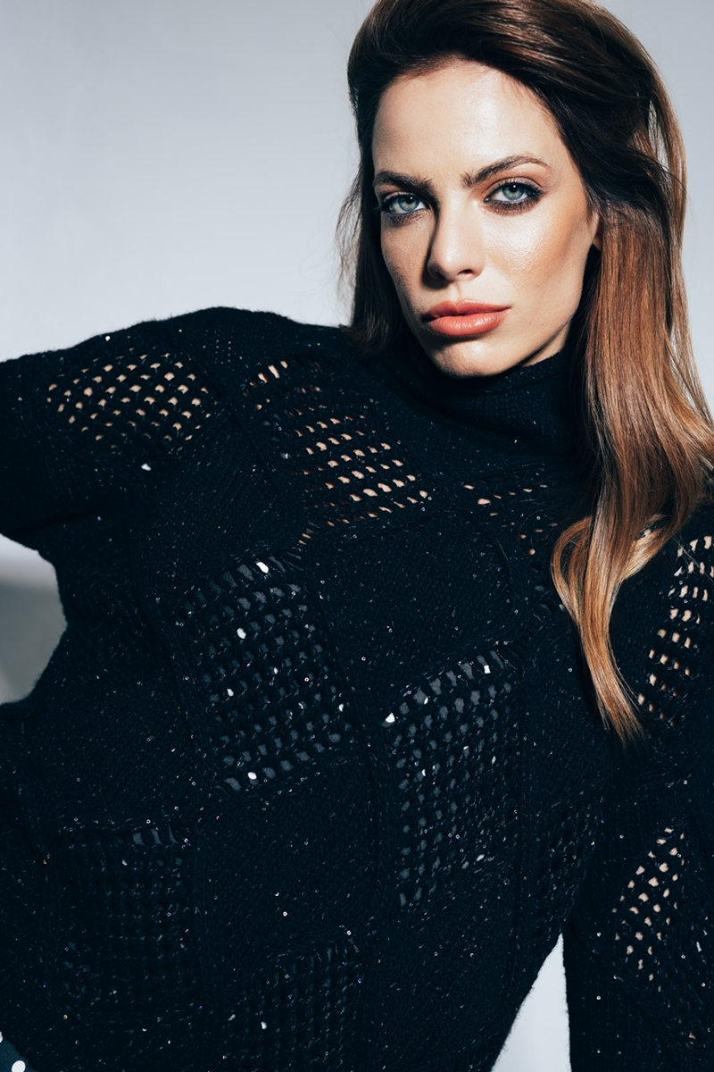 Ženski džemper sa rolkom od mešavine vune sa velikim ukrasnim prepletajem