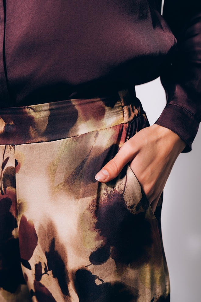 Elegantan i udoban model ženskih pantalona u raskošnoj bordo boji, izrađen od 100% viskoze. Mekani, prozračni materijal pruža osećaj prijatnosti tokom celog dana, dok klasičan kroj naglašava oblik i omogućava svestrano nošenje — od poslovnih kombinacija do ležernijih varijanti.