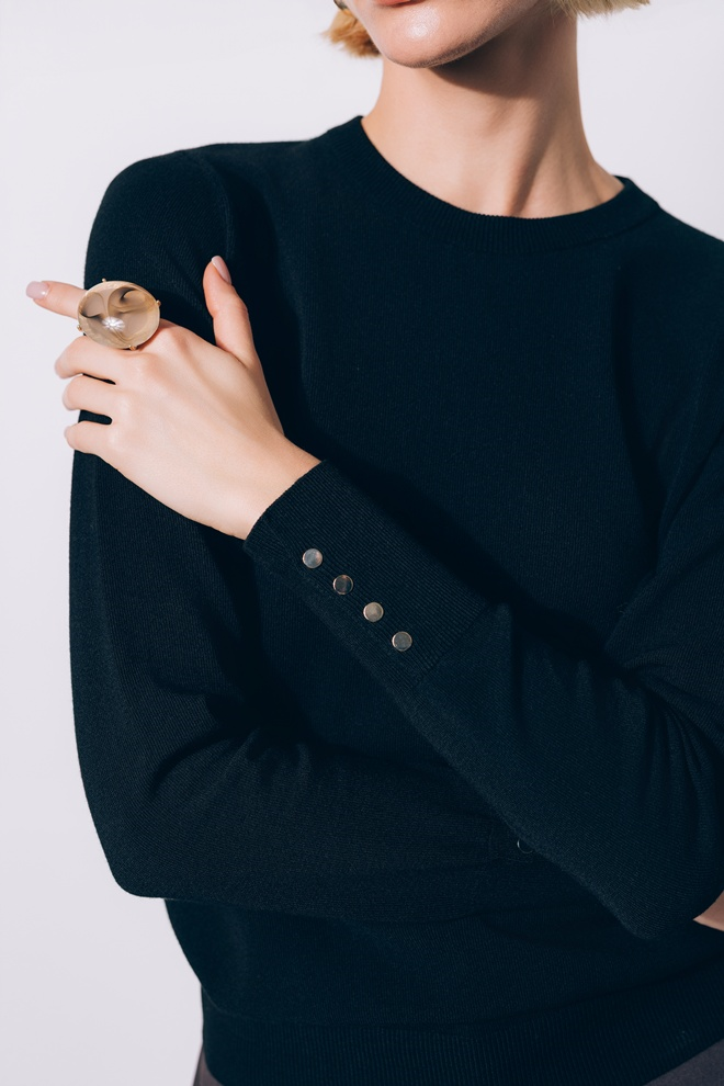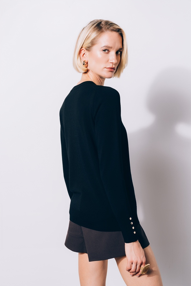 Džemper u nesvakidašnjoj crnoj nijansi koja donosi snagu i univerzalnost svakom outfitu. Krojen jednostavno i precizno, ovaj model je pouzdan izbor za izgled koji je moderan, funkcionalan i lako se uklapa u raznovrsne stilove.