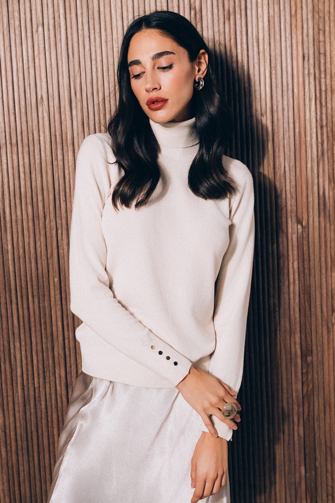 Klasična i svestrana, bela rolka iz nove Biliczki kolekcije unosi svežinu i čistinu u svaki outfit. Savršena za minimalistički i elegantan izgled, lako se kombinuje sa svim bojama i slojevima odeće, od casual do poslovnog stajlinga.