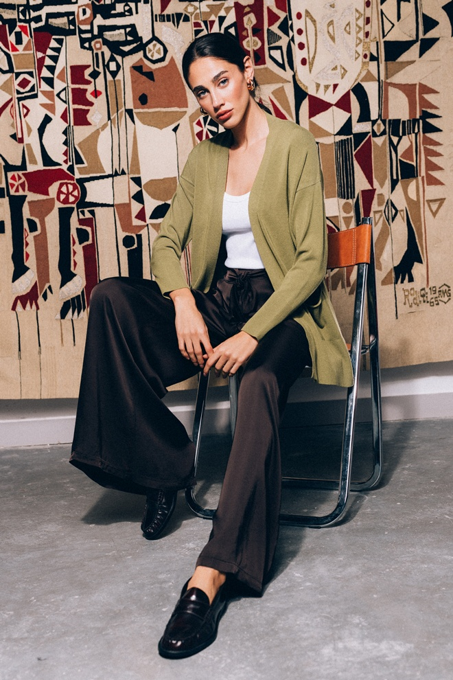 Prelepi kardigan u jedinstvenoj boji koja odmah privlači poglede — komad koji se ne meri samo udobnošću, već i stilom. Izrađen od kvalitetnog materijala koji lepo pada i zadržava oblik, idealan je za sve prilike kada želite da se istaknete. Bez suvišnih detalja, a sa snažnim vizuelnim utiskom — nosite ga uz jednostavne komade ili kao centralni deo svojeg outfita i istaknite svoj modni izraz.