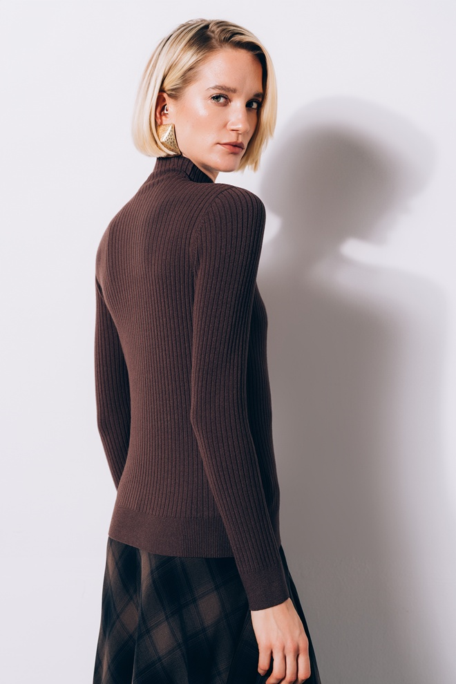 Upoznajte ženski džemper iz nove Biliczki kolekcije u elegantnoj tamno braon boji, koja unosi toplinu i klasičnu sofisticiranost u svaki stil. Klasični kroj čini ga idealnim izborom za poslovne prilike i svakodnevne kombinacije, kada želite da izgledate doterano i moderno.