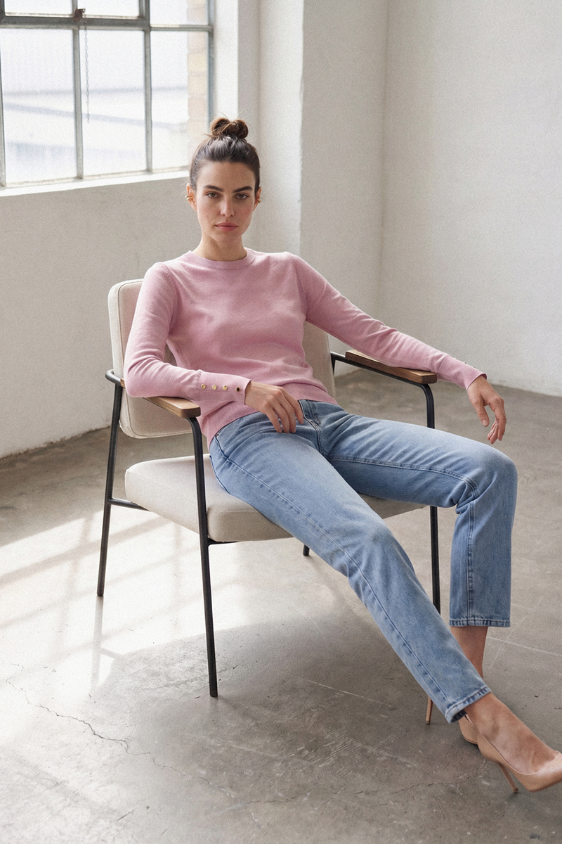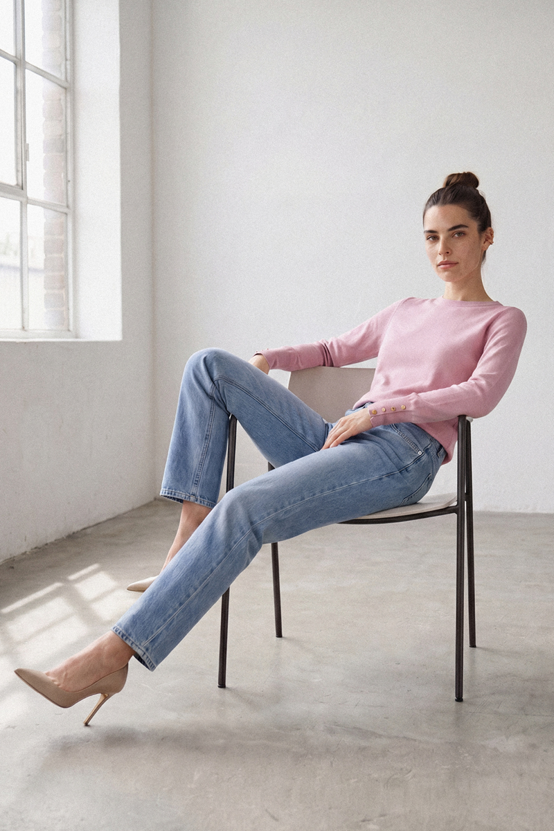 Nežan ženski džemper u svetlo roza nijansi donosi dozu elegancije svakodnevnim kombinacijama. Izrađen je od mekanog i prijatnog materijala koji pruža udobnost tokom celog dana. Lako se uklapa uz različite stilove i idealan je za svaku priliku.