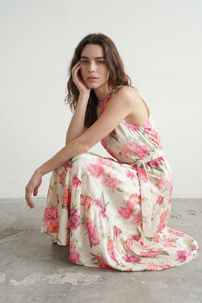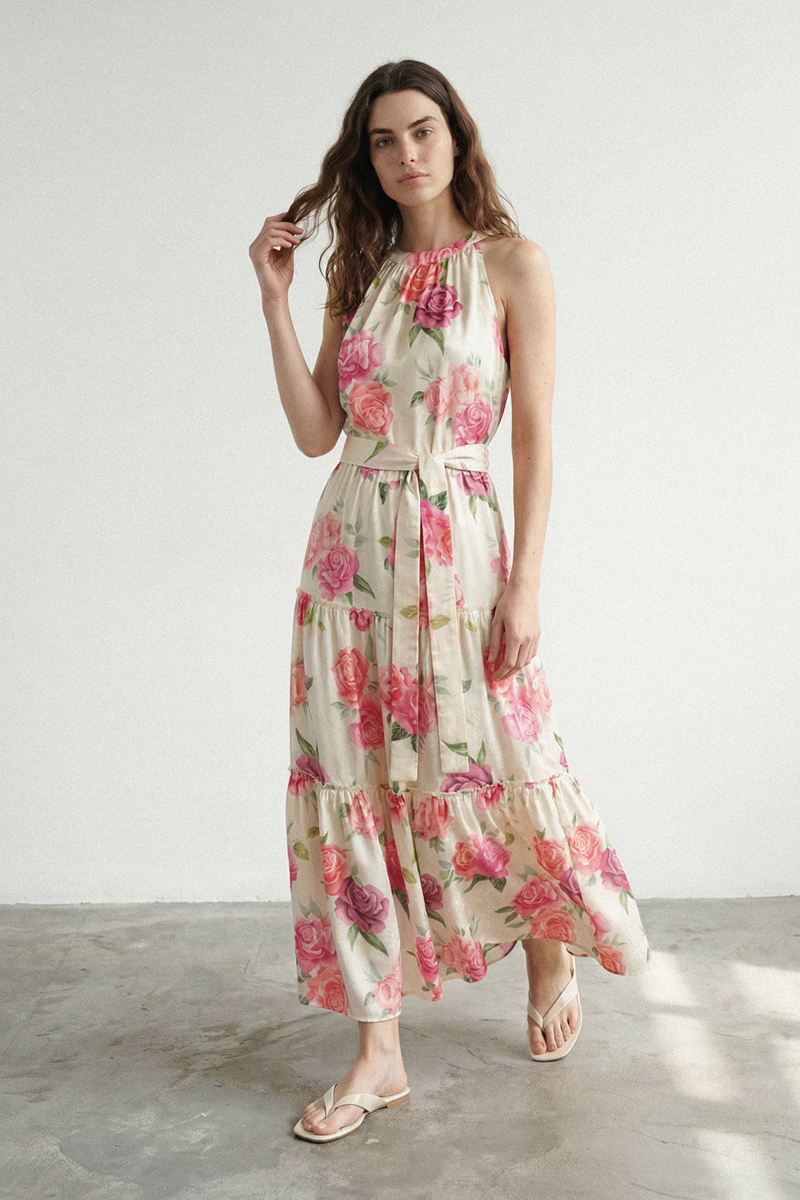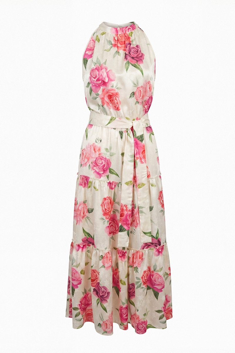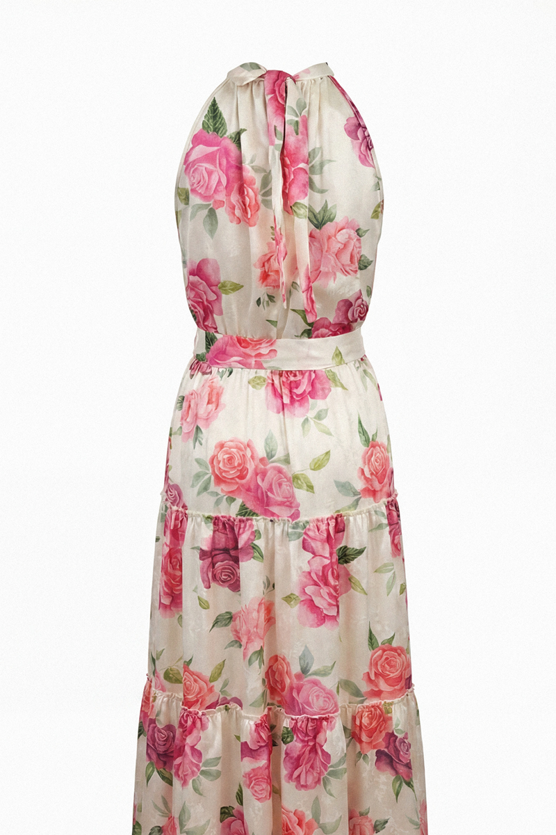 Prelepa letnja haljina sa nežnim cvetnim dezenom koja odiše romantikom i elegancijom. Izrađena od laganog i prozračnog materijala, pruža maksimalnu udobnost i prijatan osećaj tokom toplih dana. Njen ženstveni kroj i lepršava silueta čine je savršenim izborom kako za svečane prilike, tako i za opuštene dnevne kombinacije kada želite da se osećate posebno i primećeno.