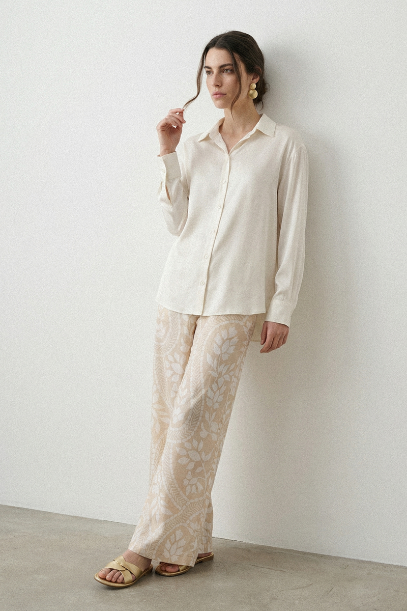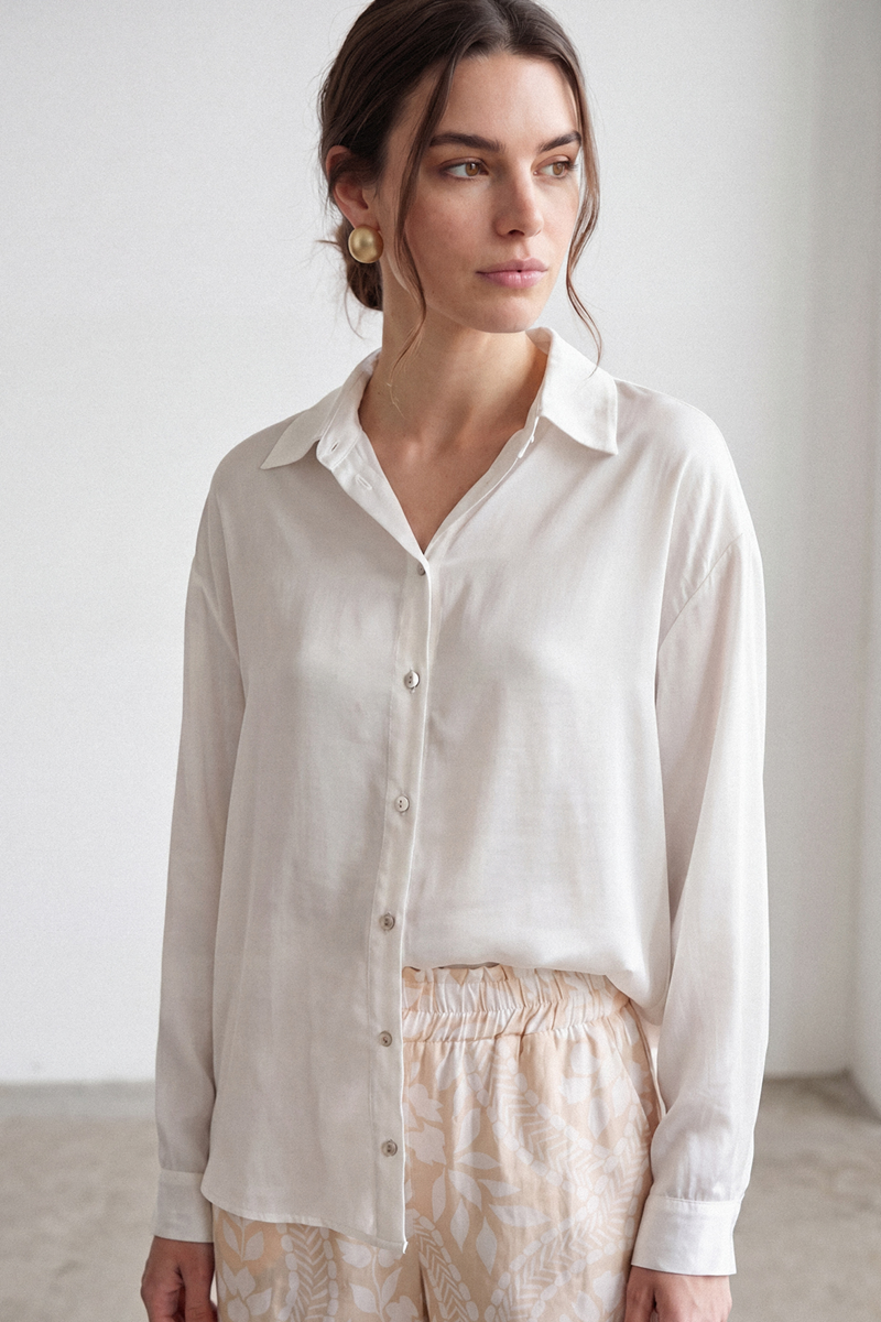 Ženska košulja modernog, jednostavnog kroja koja se lako uklapa u svakodnevne i kombinacije za različite prilike. Izrađena od prijatnog i laganog materijala koji pruža udobnost tokom celog dana. Zahvaljujući čistom dizajnu, predstavlja praktičan i lako uklopiv komad garderobe.