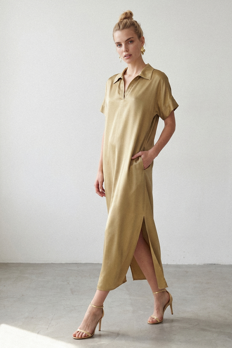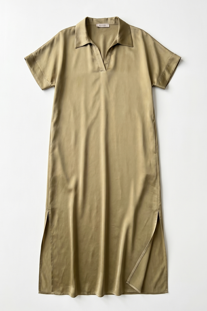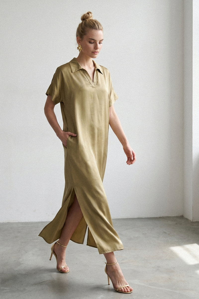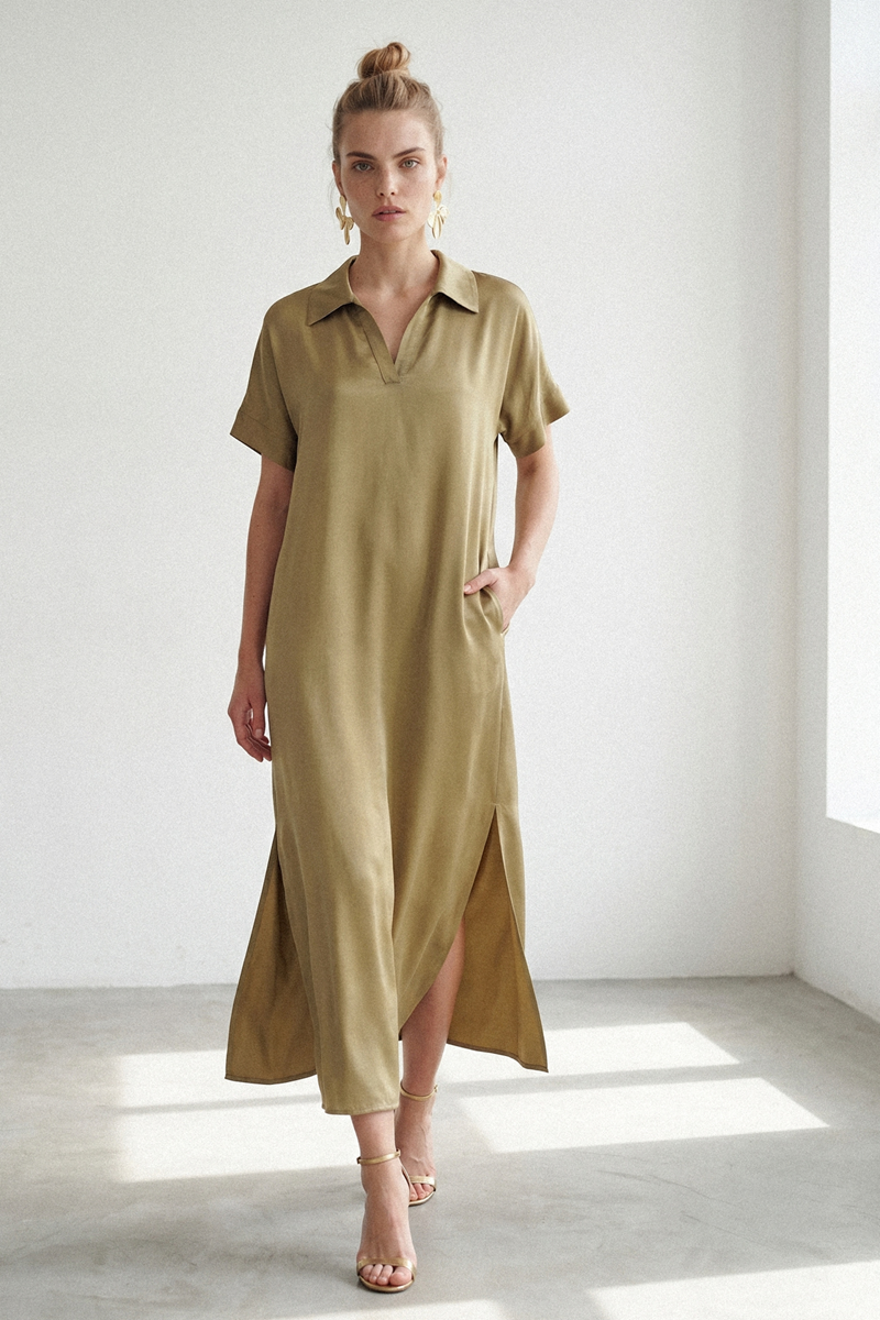 Ženska haljina modernog i udobnog kroja koja pruža savršen balans između ležernog i sređenog izgleda. Izrađena od prijatnog materijala koji lepo pada i omogućava celodnevnu udobnost. Njen jednostavan, ali ženstven dizajn lako se uklapa u različite prilike – od dnevnih kombinacija do večernjih izlazaka. Dostupna je u dve boje svetlo braon i maslinasto zelena.